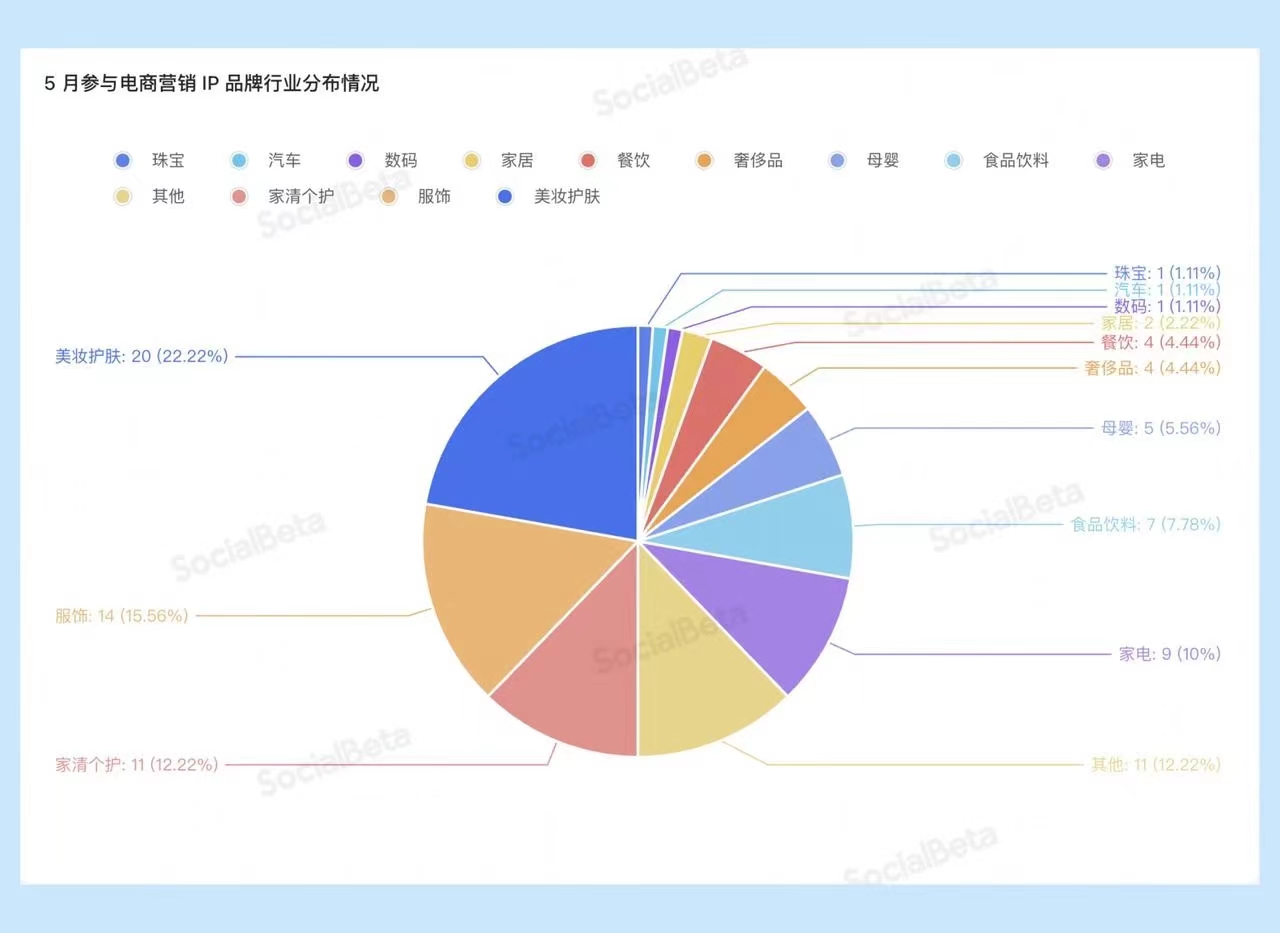 第三期月报,我们以 SocialBeta Lite 收录的 5 月各大电商平台共计 88 个营销 IP 案例数据为基础,通过梳理与总结,从中提炼出最新市场大盘概况、电商营销 IP 动态、优质营销案例以及营销趋势热点。