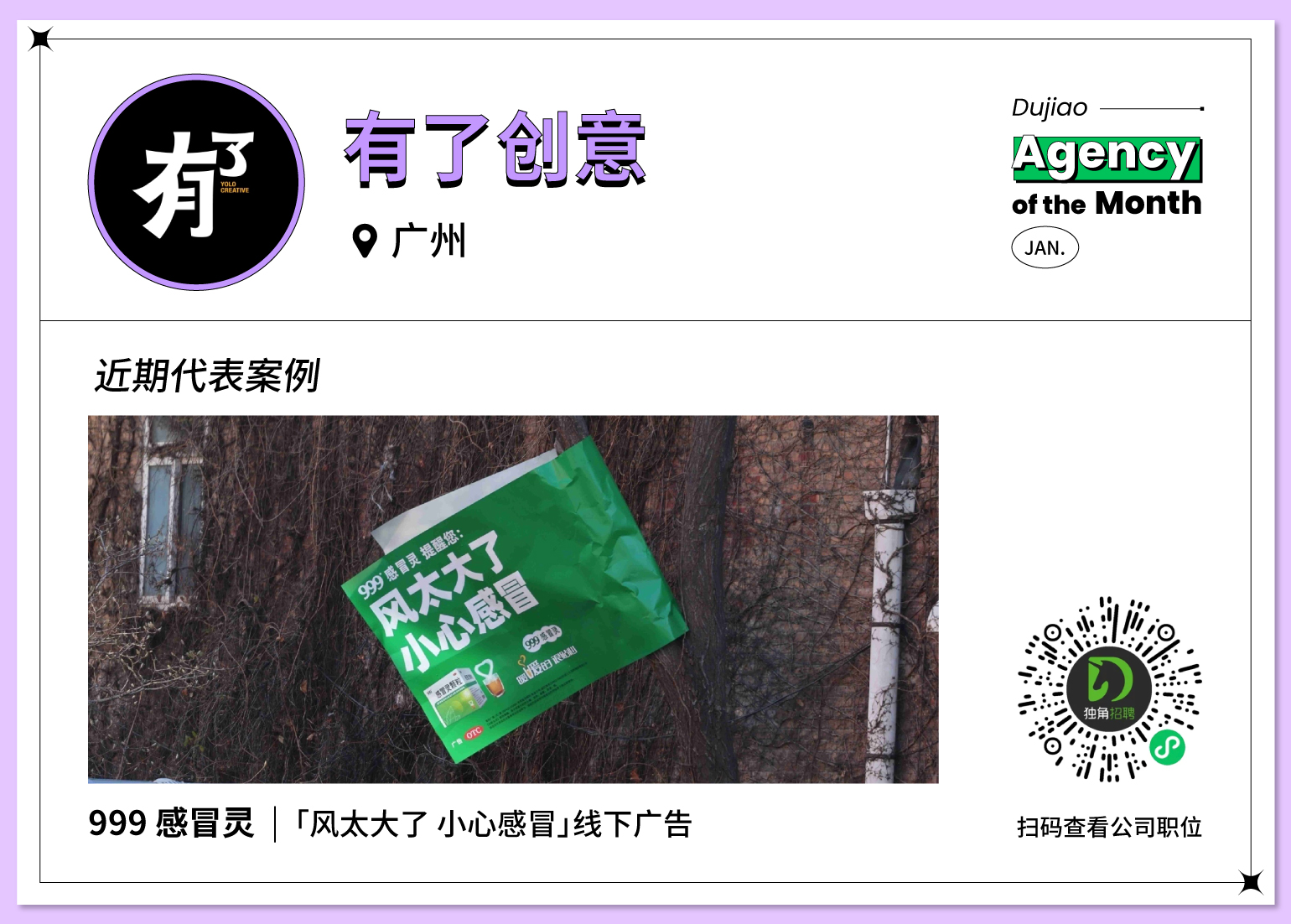 这个月,大家有没有在社交媒体或是北京街头看到 999 感冒灵「风太大了 小心感冒」线下广告,这正是有了创意为 999 感冒灵打造的暖心创意事件。他们在这个冬天,在街头和地铁站带来一系列「顶着妖风营业的暖心广告」,吸引了大批路人打卡拍照,在社交媒体上形成自传播。这一波巧妙的线下创意既有效传递产品卖点,同时展现品牌关怀。