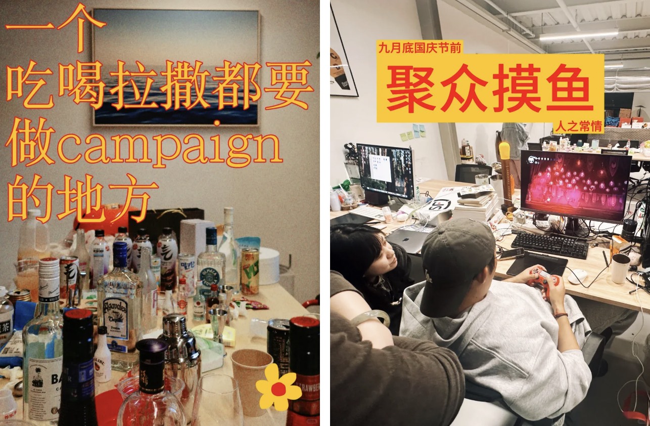 此前,我们多次给大家介绍过药开心这家小而美的创意热店。药开心在小红书上还有一个小号@药开花IdeaBlooming,在这里可以围观广告公司的「抽象」日常:办公室煮火锅、烧烤、喝小酒……