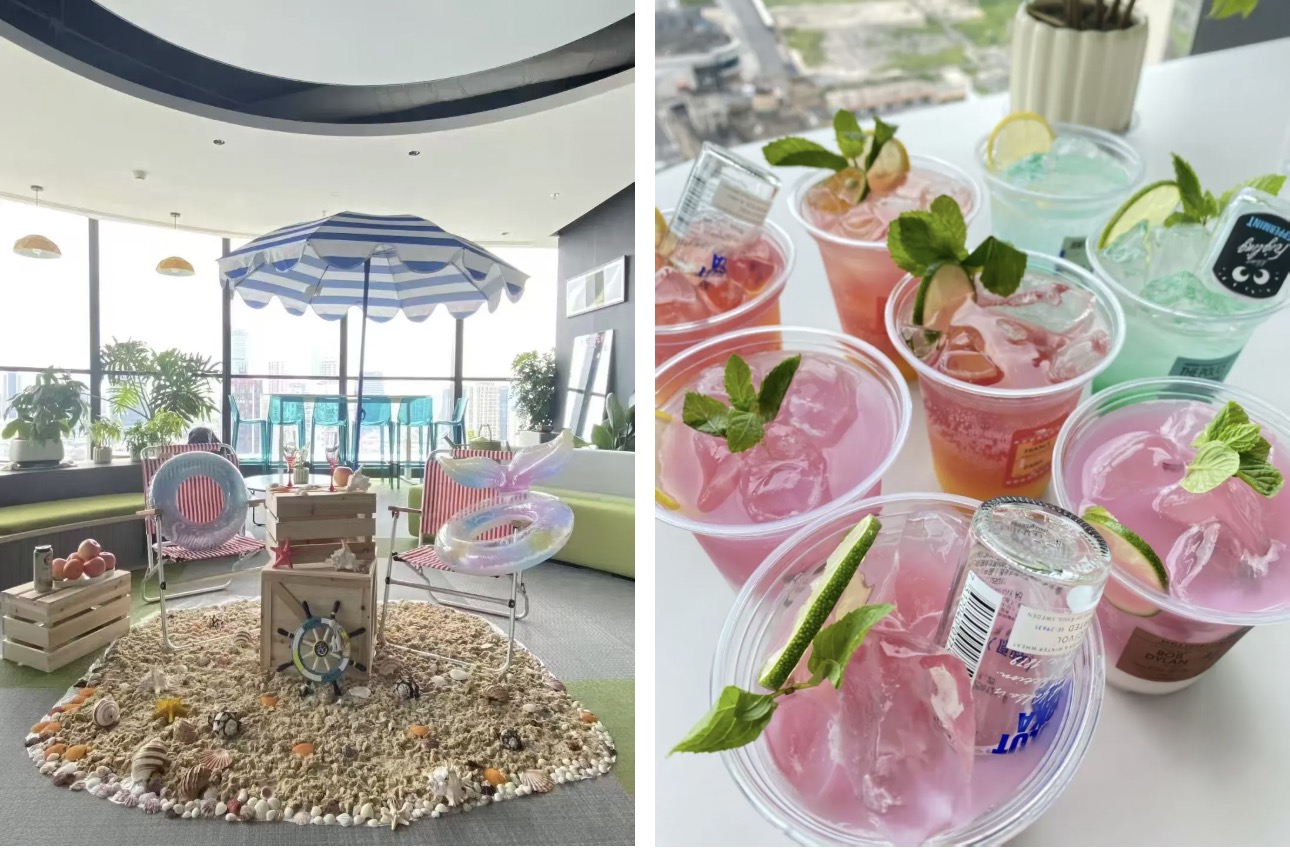 去年夏天,PUSU【白日微醺计划-不止 1.0】来啦!他们在室内打造夏日海滩 Bar —沙滩椅、遮阳伞、甚至还有人造沙滩!小甜酒、特调鸡尾酒无限续杯畅饮~夏日嗨起来,一起来 PUSU 喝漂亮酒吧~
