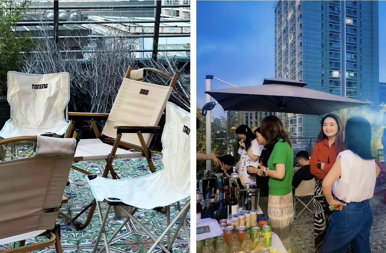 此前,我们已经给大家介绍过 COMOON 的办公室,银色的金属感+橙色的灯光,他们还在这里打造了一个未来营地,大家可以快速逃离班味,在办公室假装露营。