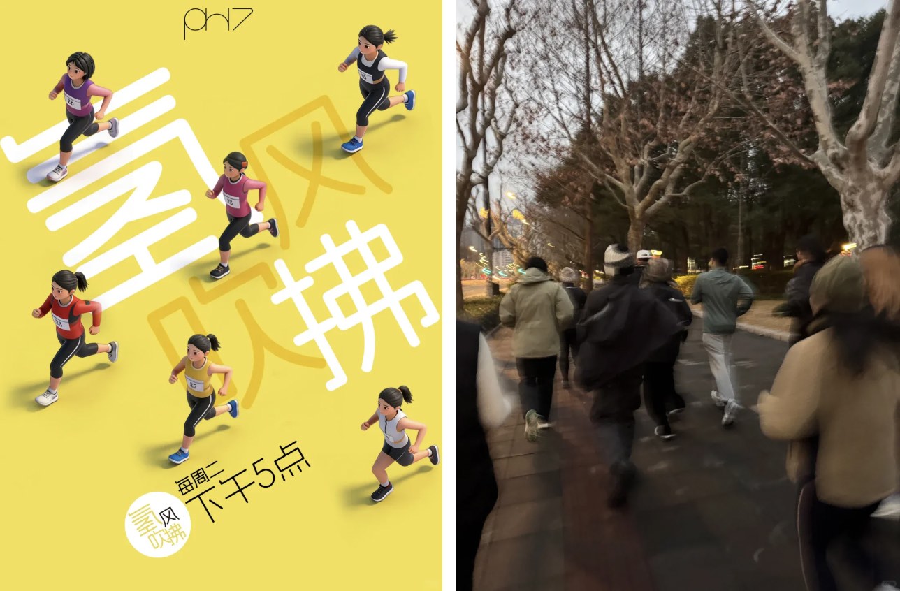 pH7 的小红书 ID 正是「氢华园摸鱼办事处」,在这里可以围观他们的摸鱼日常,团建活动、每月生日会等等轻松有趣的日常内容。今年,pH7 发起了「氢风吹拂」运动,每个周二下午一起开跑!