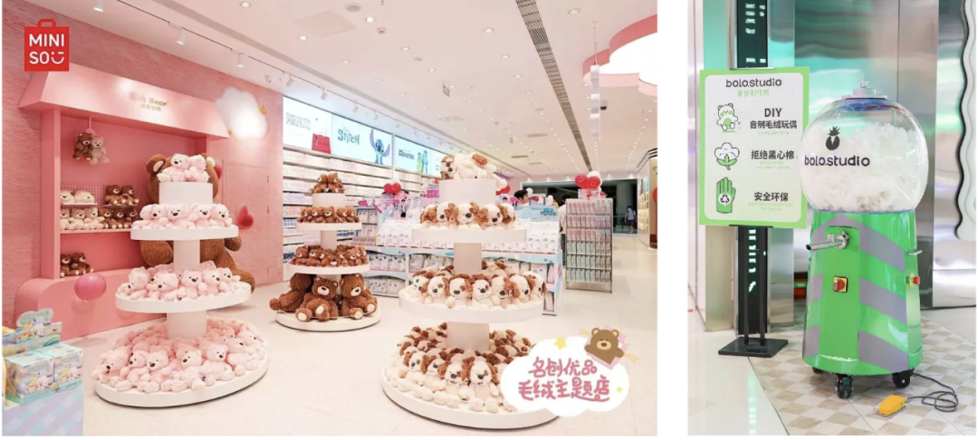 几年前,品牌在重庆开设首家毛绒主题店,从门头设计到店内布置,让「绒绒」爱好者们直呼天堂。在店内,名创优品还贴心设置了毛绒「阿贝贝」展馆,邀请消费者讲述或倾听「阿贝贝」的故事,互通感动、获得治愈。
