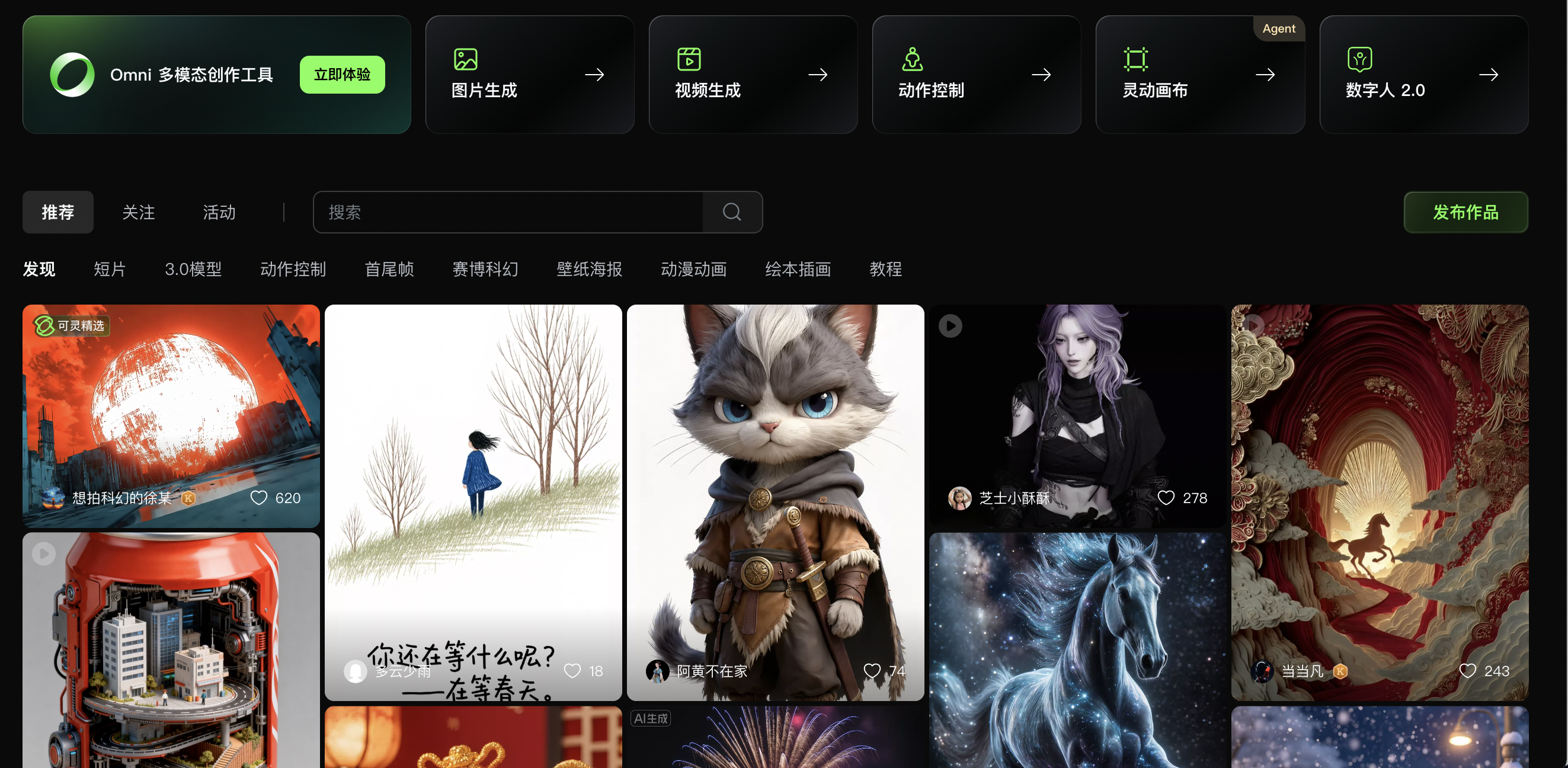 可灵是快手 AI 团队自主研发的视频生成大模型及创意生产力平台,于 2024 年 6 月正式上线,支持生成 1080p 分辨率、最长 2 分钟的视频,兼容自由宽高比,技术路线对标 Sora。可灵活实现文生视频、图生视频、视频续写等功能,满足不同创作需求。支持 1080P 分辨率、30帧/秒的视频生成,单次可生成长达 3 分钟的视频,远超同类产品的时长和画质水平。基于快手生态的中文数据训练,对中文提示词理解精准,支持口语化表达和方言,能更好地还原本土场景和文化元素。对接快手生态,快手平台创作者友好。